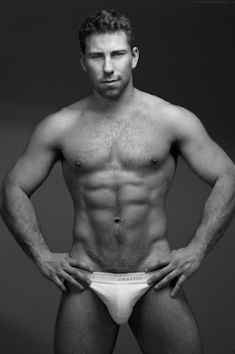 So, this week in the Candy Shop I have yet another autumnal warmer for us all..... unders model.... Bruin Collinsworth. He’s definitely a handsome and buff stud, and his assets seem to be impressive. I guess he’s one of those models that you could hire for an underwear shoot and know that he’s gonna deliver the goods and fill the order. But with just the right amount of hair and that Chestshire Cat grin......me has got me puuurrrrrrring.........